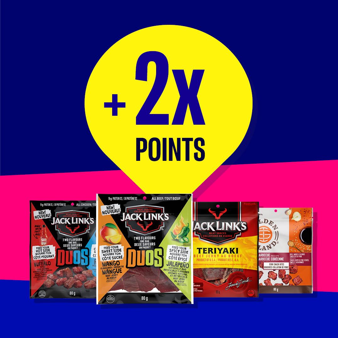 Deal runs from April 1, 2026, 12:00:00 AM to June 9, 2026, 11:59:59 PM. You’ll receive the points multiplier set out below when you buy 2 Jack Link’s or Golden Island Meat Snacks (65-81g) for $13.99. Members will earn 4 Journie points for every $1 spent on eligible products purchased at participating locations. Deposit, taxes, and levy where applicable. Points multiplier is applied only to the eligible products and not to the total value of your purchase. Limit of 6 products per transaction, per person, per day. For participating locations, visit the Map in your Journie Rewards app or the Store Locator on journie.ca to find a store where you can earn Journie Rewards. Not applicable at independent dealer locations.