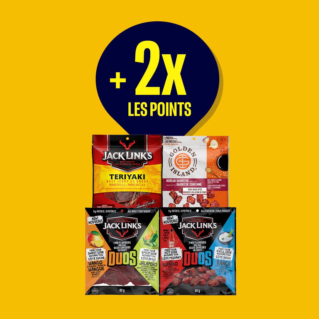 Achetez 2 collations Jack Link’s (65-81g) pour 12,99 $ seulement et profitez-en pour accumuler 2X les points! Que vous soyez en déplacement, au travail ou simplement en quête d’une collation protéinée, profitez de notre offre pour faire le plein et économiser.