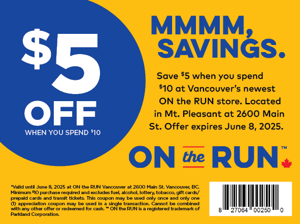 Swing by the new ON the RUN in Mt. Pleasant and get $5 off when you spend $10 or more. From snacks to sips, stock up and save big — but don’t wait, this limited-time offer expires June 8, 2025!