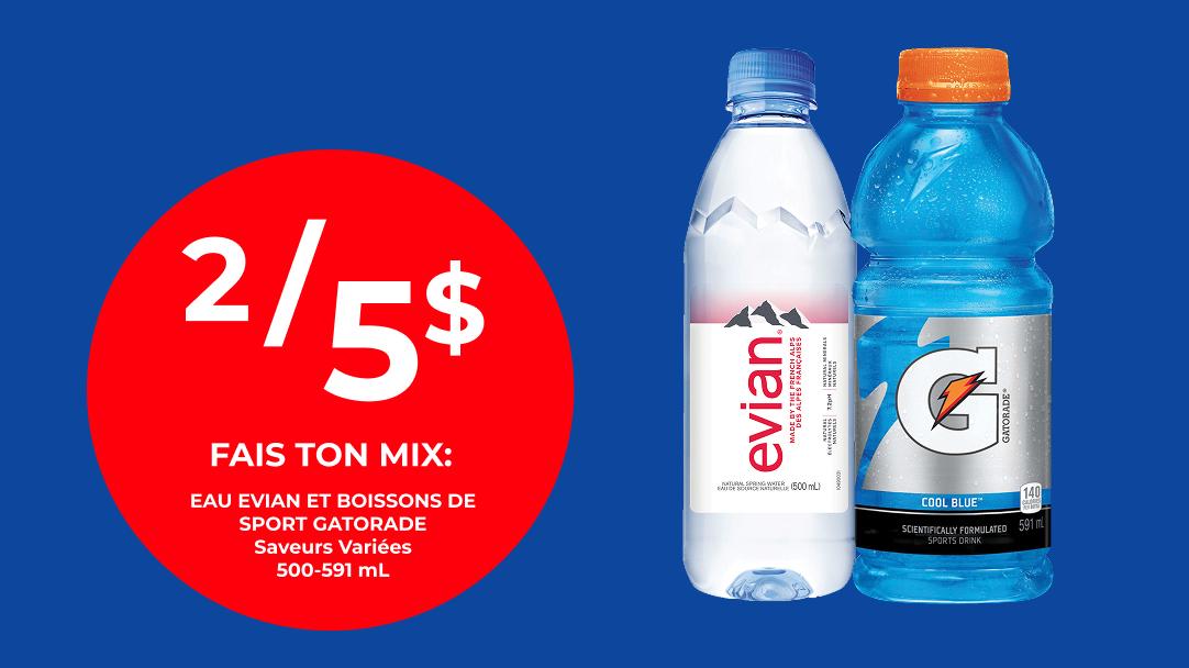 Eau Evian et boissons de Sport Gatorade