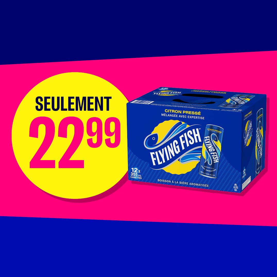 L’offre est valide uniquement au Québec. L’offre est en vigueur du 1 avril à 00 h 00 min 00 s au 9 juin 2026 à 23 h 59 min 59 s. Les membres Journie peuvent économiser 2 $ à l’achat d’un (1) 12-pack de bière alcoolisée Flying Fish (12x355ml) pour 22,99 $. Prix non-membre : 24,99 $. Des taxes, redevances et consignes s’appliquent, s’il y a lieu. Limite quotidienne de 3 produits par transaction, par personne. Pour consulter la liste des emplacements participantes, visitez le Plan sur l’appli Récompenses Journie ou la page Emplacements à journie.ca pour trouver un emplacement où vous pouvez accumuler des récompenses Journie. Non applicable chez les détaillants indépendants.
