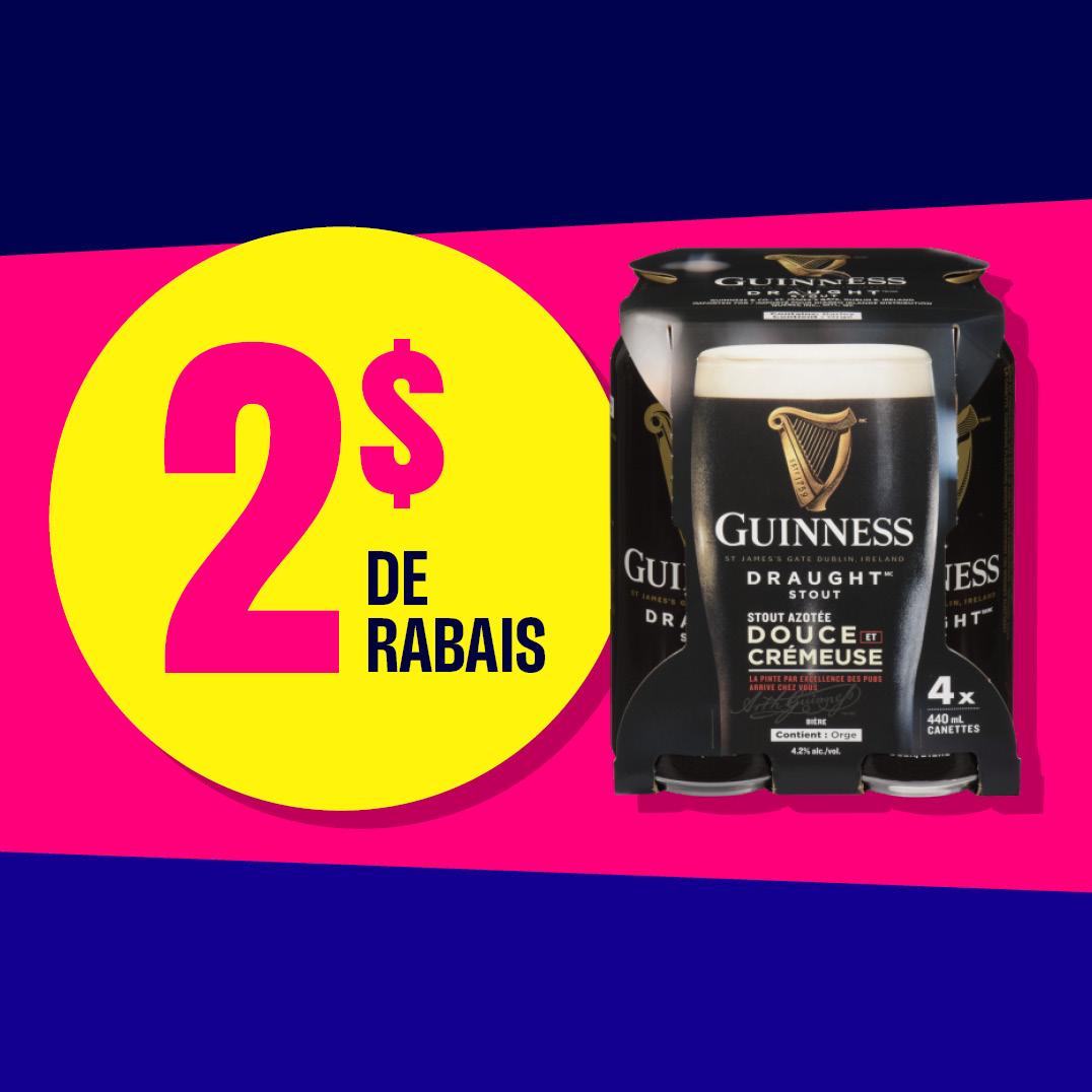 Profitez aussi de 1 $ de rabais sur les canettes individuelles Guinness !